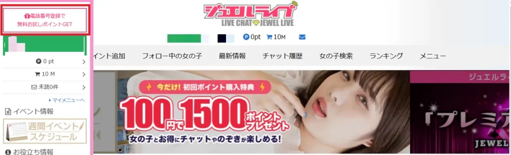 ジュエルライブは、前課金制のライブチャットサービスなので基本的に無料で楽しむことはできません。