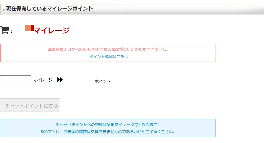 マイレージとは、ユーザーがチャットの利用など特定の条件をクリアすると貯まるポイントプログラムのことです。貯まったマイレージは、500マイレージごとに500チャットポイントに交換できます。