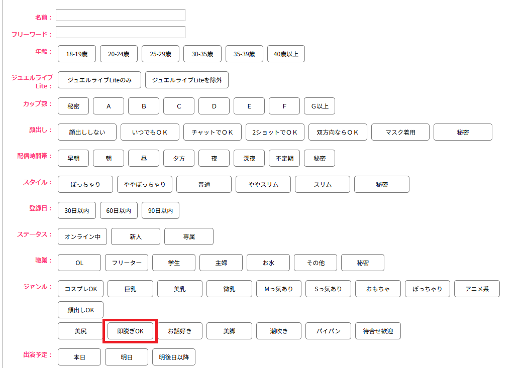 脱いでくれるかどうかを判断する際には、検索で「即脱ぎOK」のジャンルを選ぶのがおすすめです。