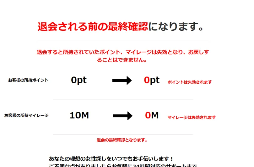 もちろん退会手数料などは一切発生しません。もし手続き完了の旨を記載したメールが届かない場合には、念のため運営側に問い合わせしましょう。