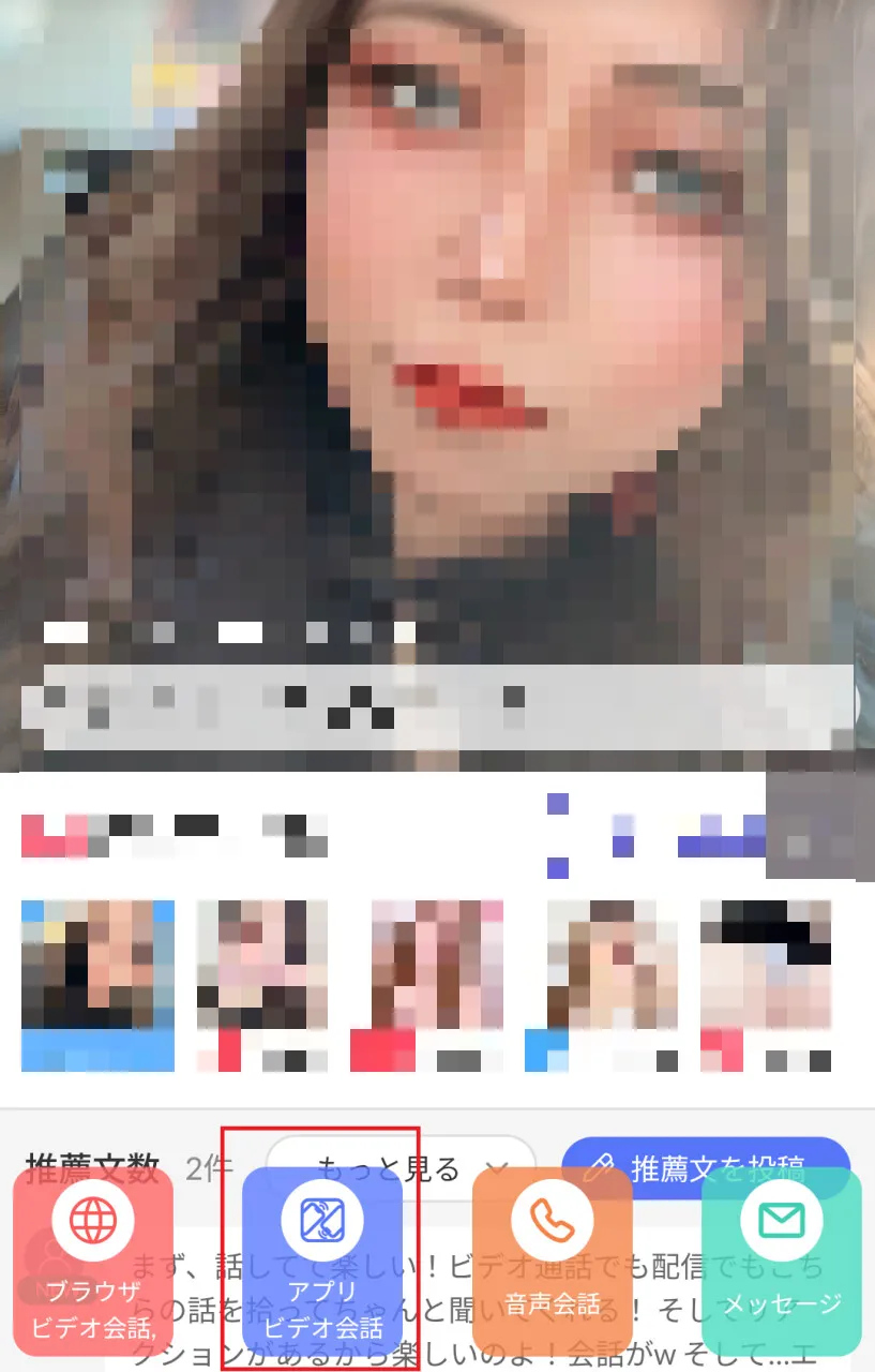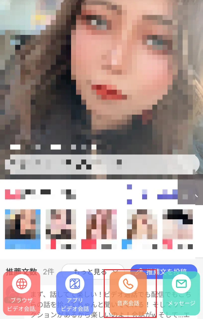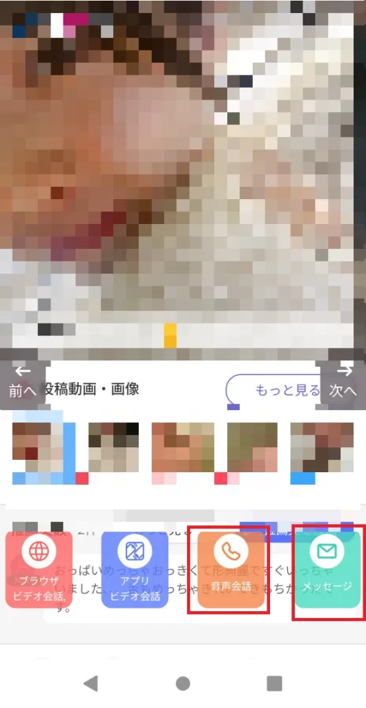 好みの女の子を見つけたら、「音声通話」や「メッセージ」を選択します。
