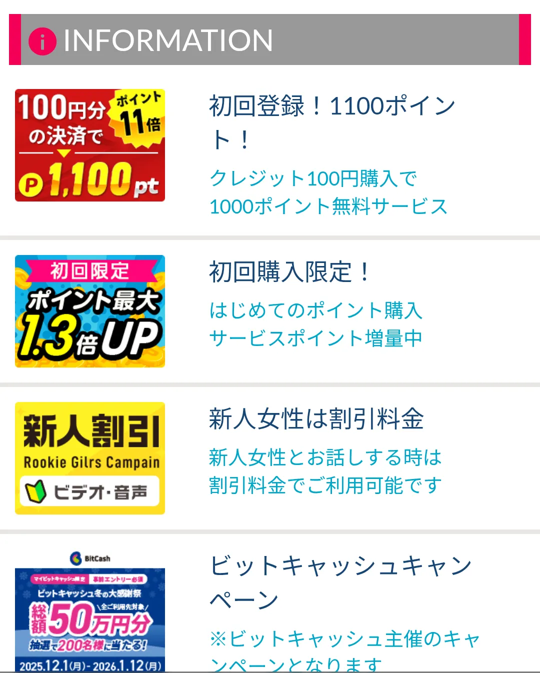 無料ポイントを獲得すれば、ビデオ通話や音声通話が楽しめます。
