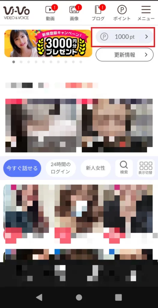 VI-VOに登録すると初回特典として3,000円分のポイントがもらえるので、約13分間ビデオ通話ができます。すぐにプレイに入ってくれる女の子なら、2人分くらいになるので十分に楽しめます